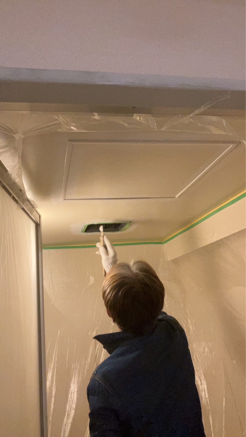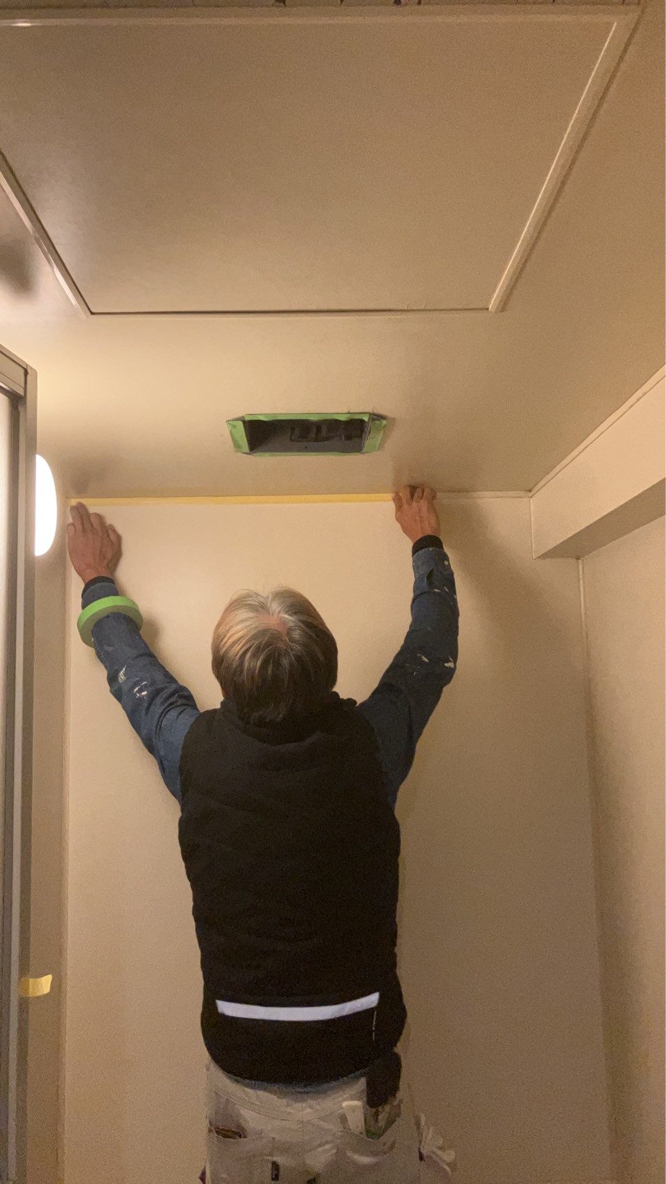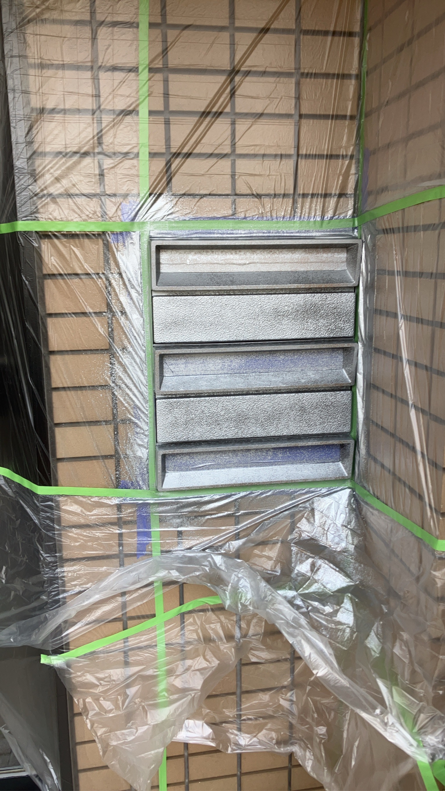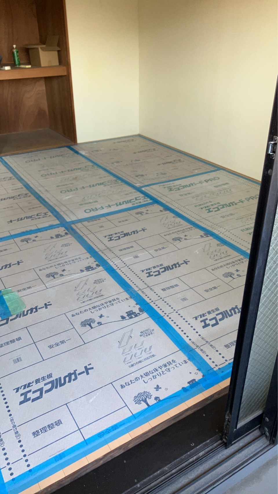 今回は塗装のご依頼もありましたので、まずは養生を。