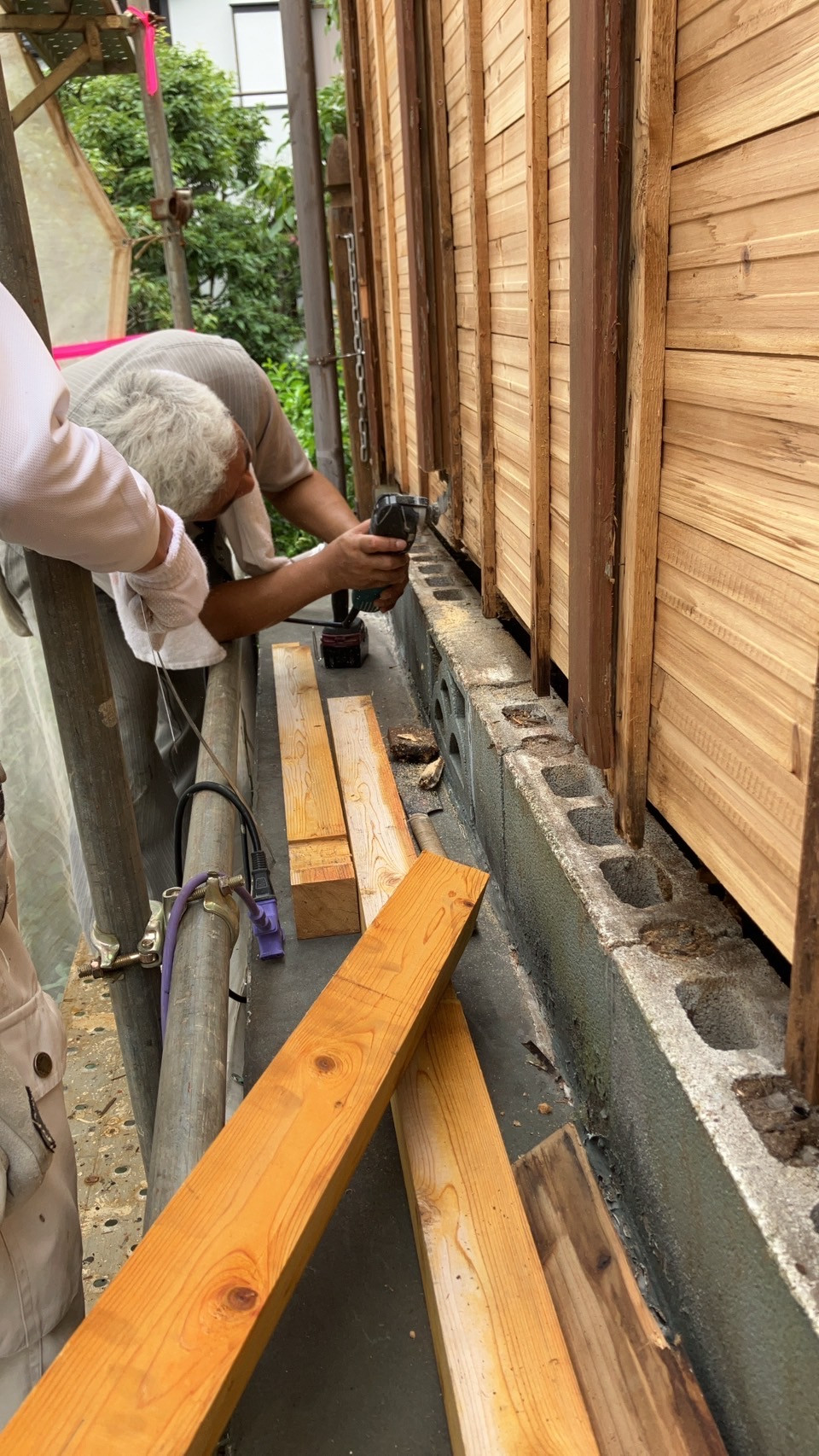 まず古い木材を全て剥がしていきます。
