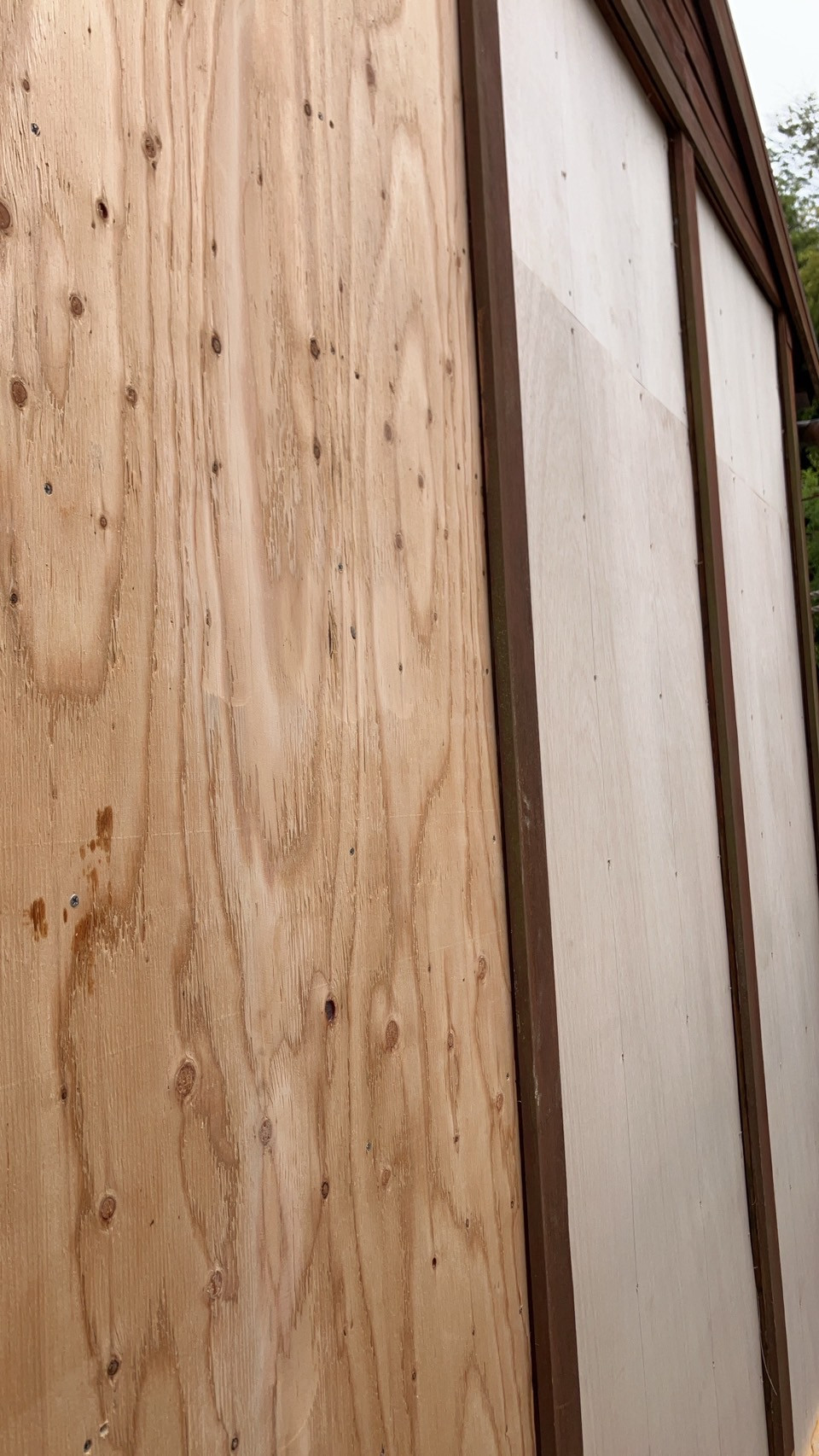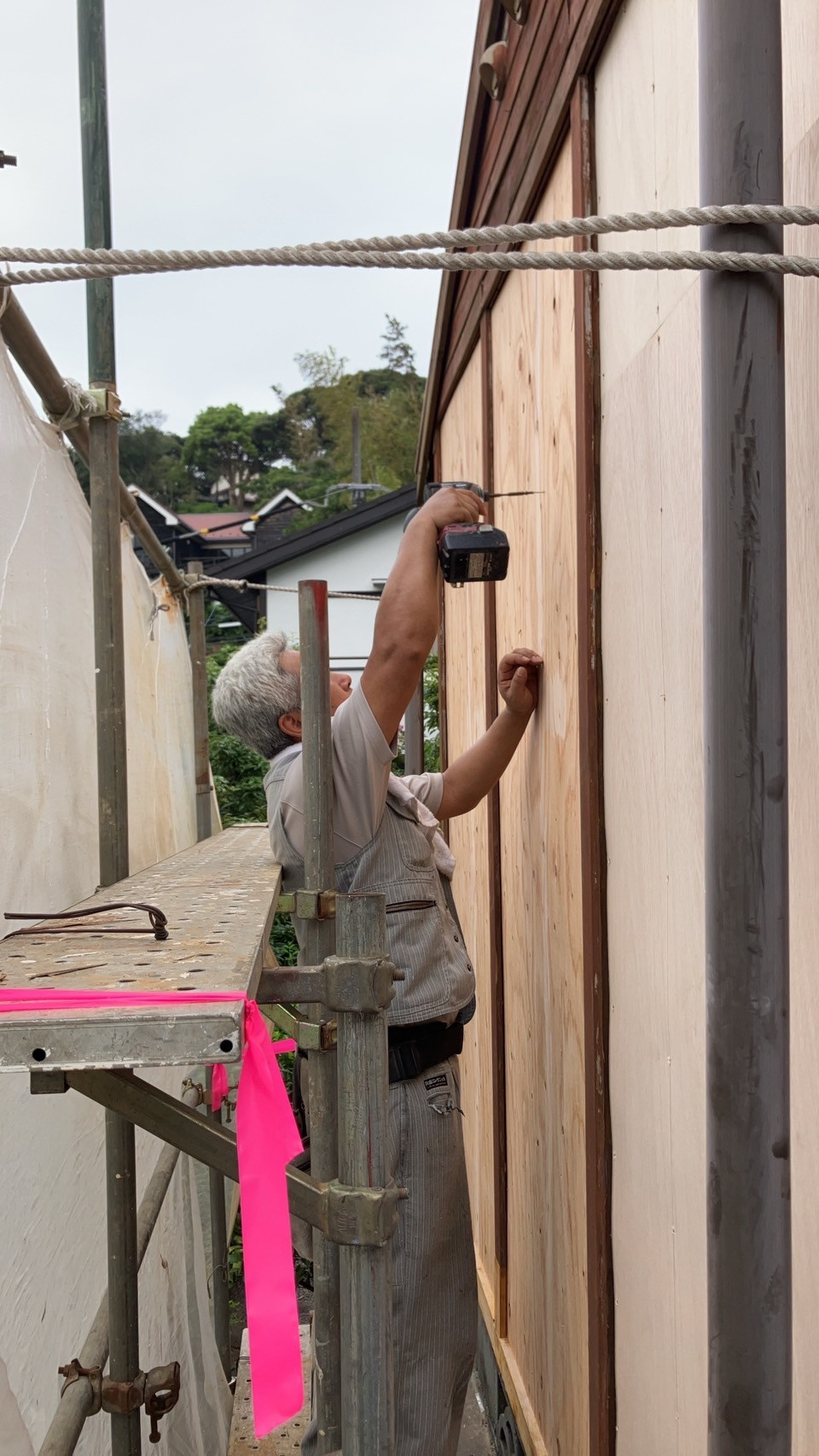 そして木材を貼った上から更に新しいベニヤ板をビス打ちしていきます。