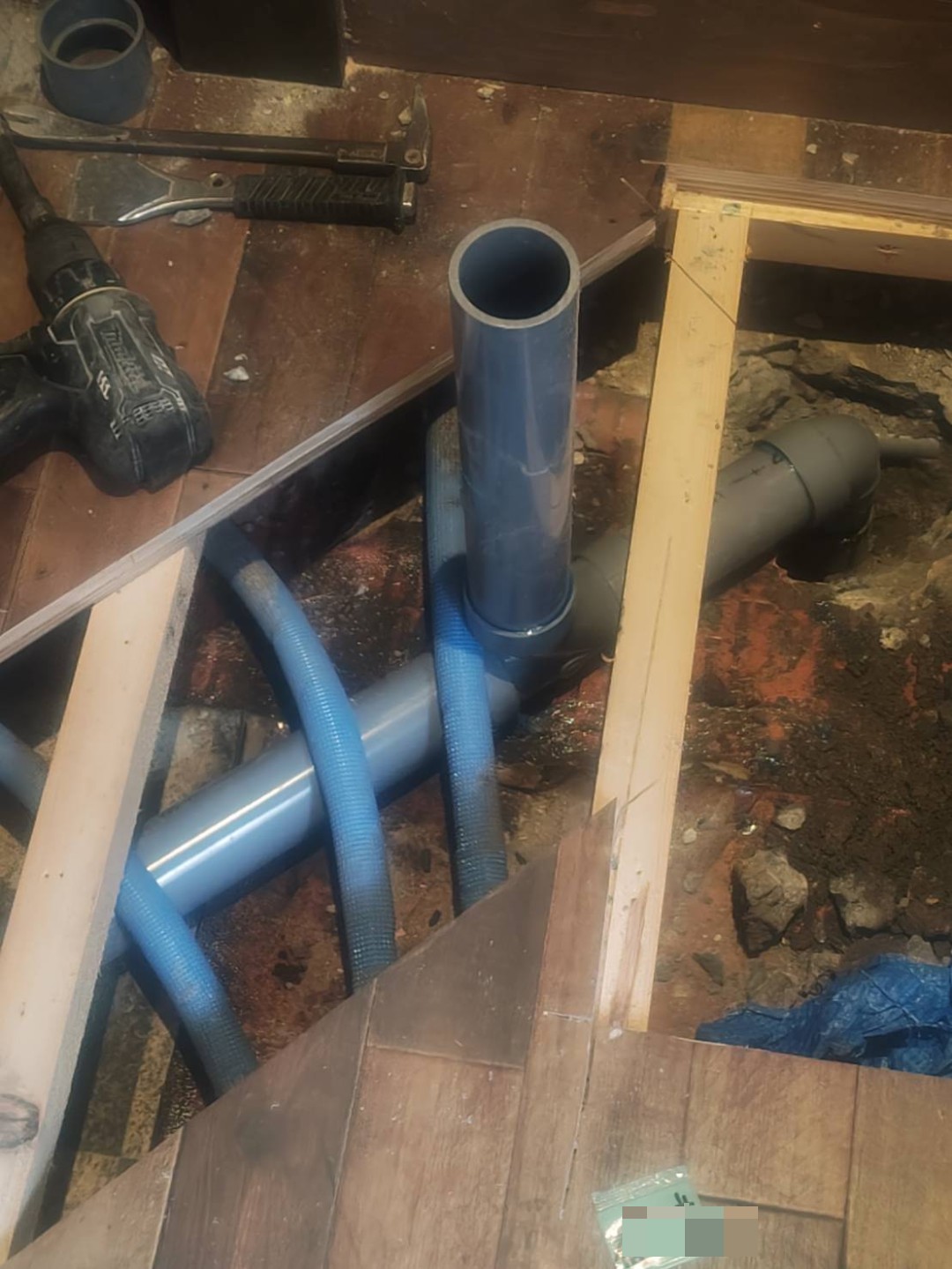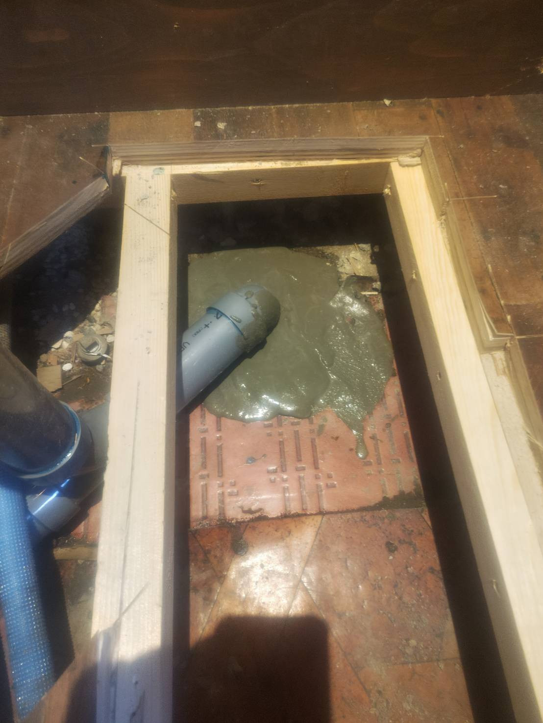 穴を開けた部分に下地のベニヤを貼って、その上に仕上げのフロアタイルを貼ります。