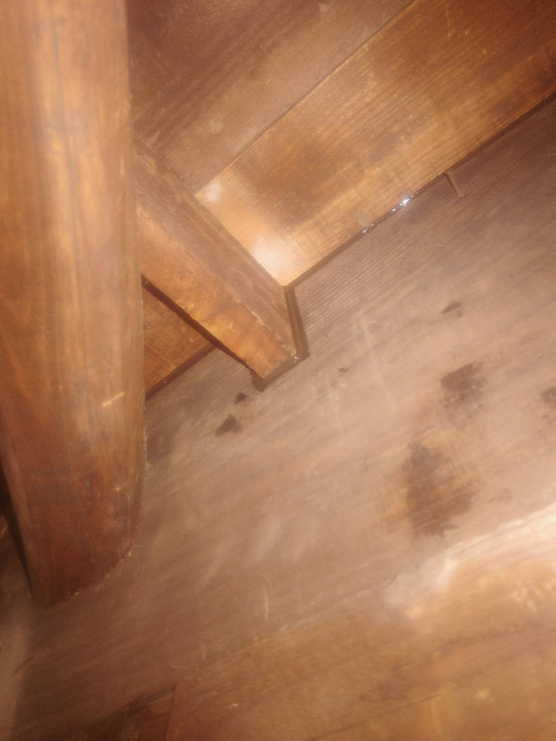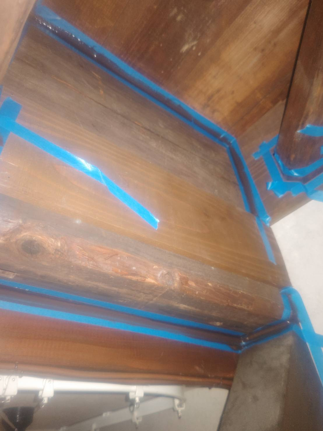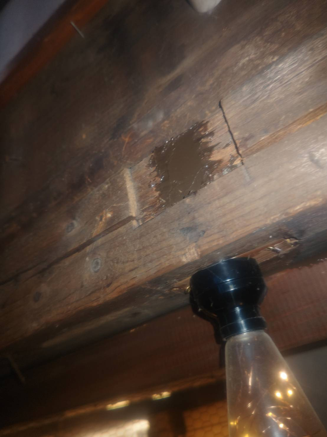 天井とか柱や梁の境目とか傷んで穴が開いてしまったところに茶色のコーキングを打ちました。