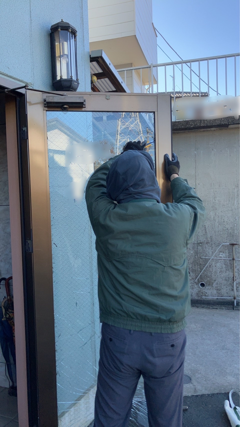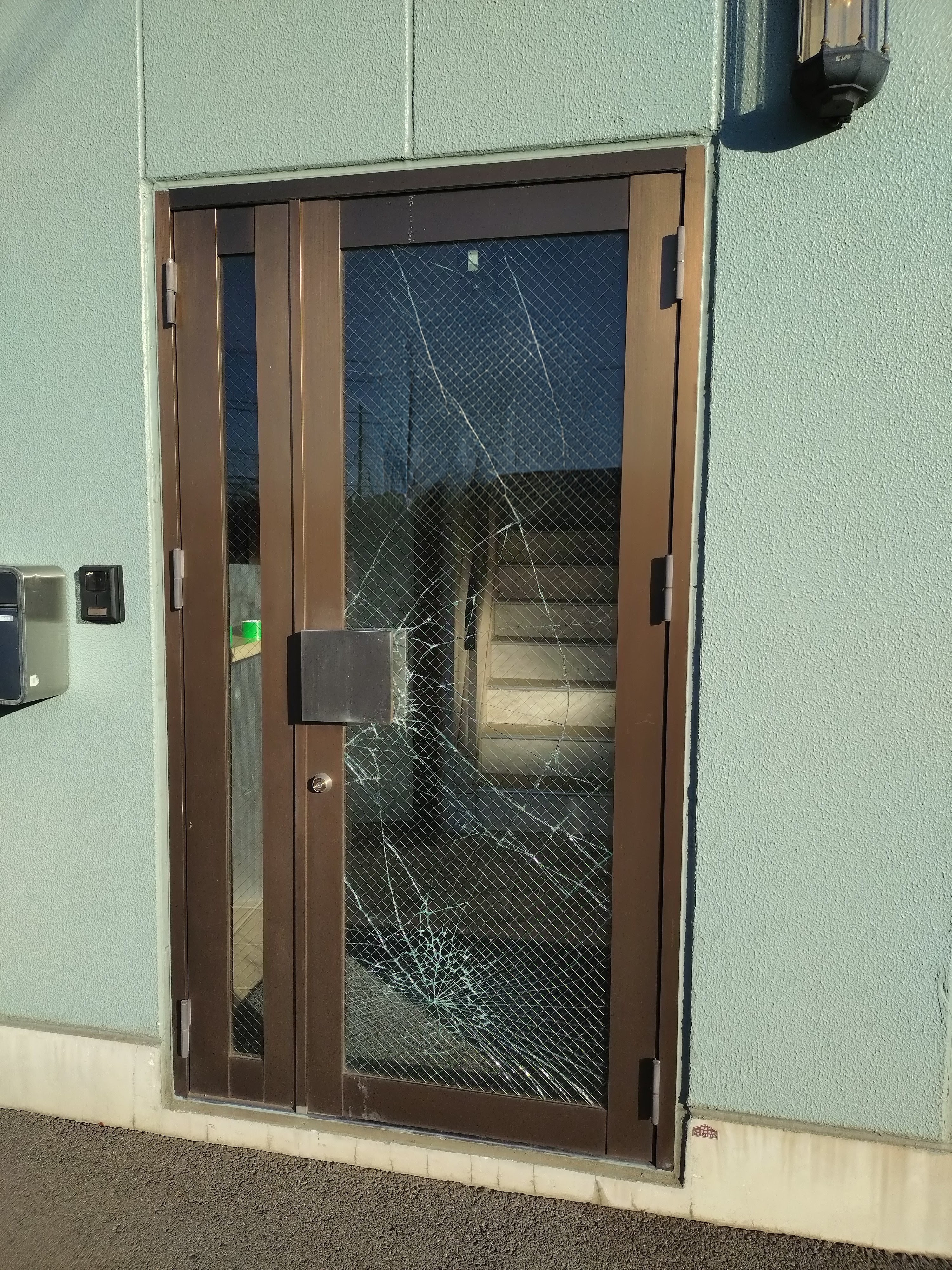 「会社の入り口のガラスが割れました。」とのご連絡あり。